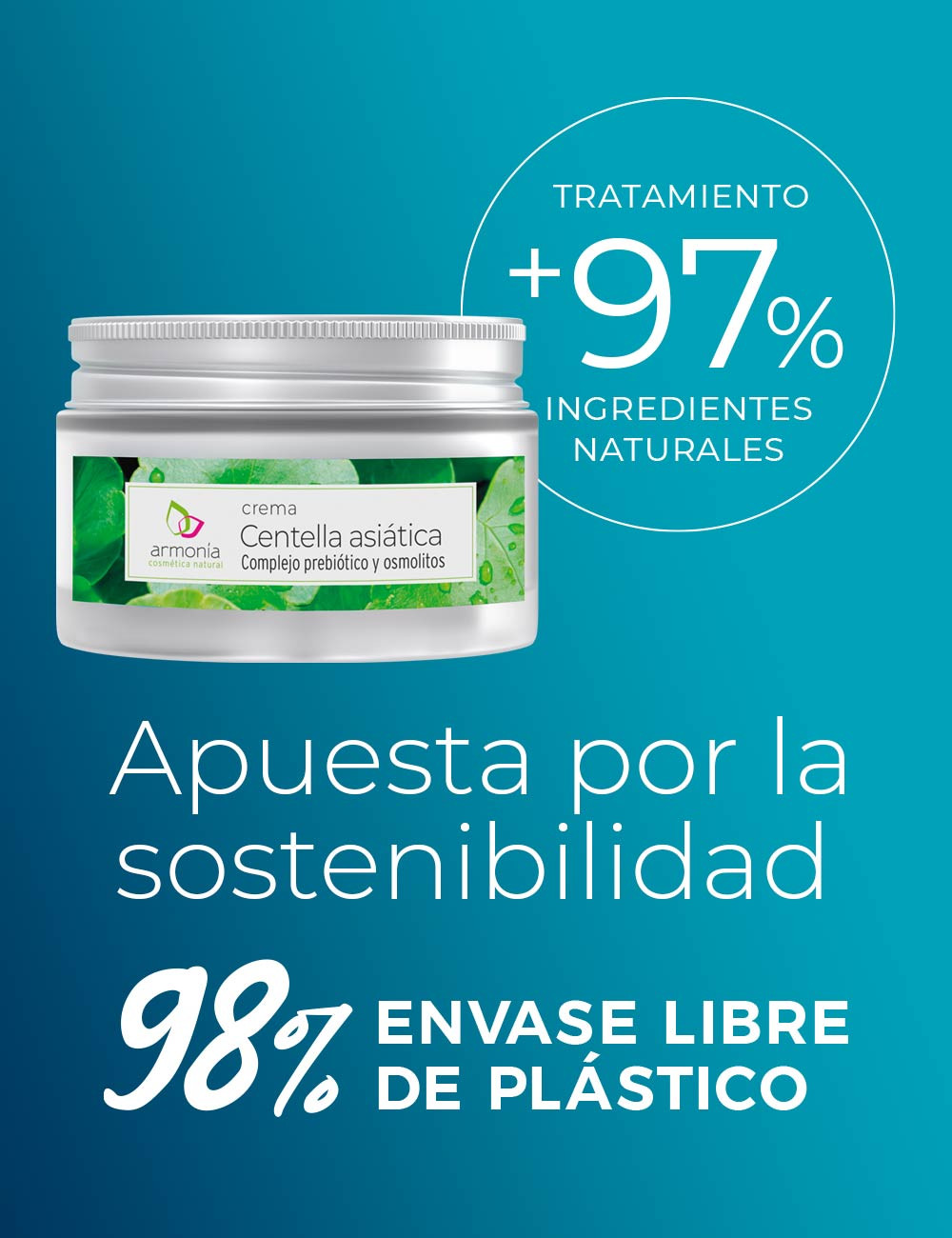 Además del poder regenerador de la centella asiática, nuestra fórmula contiene osmolitos, pequeñas moléculas -entre ellas la Betaína-, que actúan como reguladores de hidratación dentro de las células y que ayudan a la piel a retener agua y mantenerse flexible durante todo el día, incluso en condiciones extremas de frío, calor, estrés o contaminación y un complejo prebiótico que favorece un entorno microbiano equilibrado reduciendo la sensibilidad en la piel.
